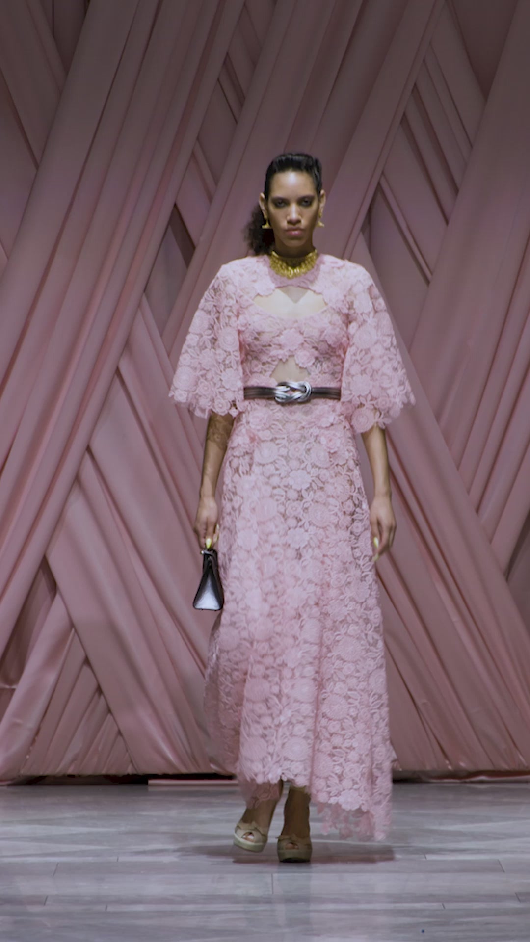 A delicate dress in blossom Smita lace, designed with a fitted bodice and an asymmetric hemline. The lace fabric gives a romantic feel, while the angled hem creates movement and a modern edge.
