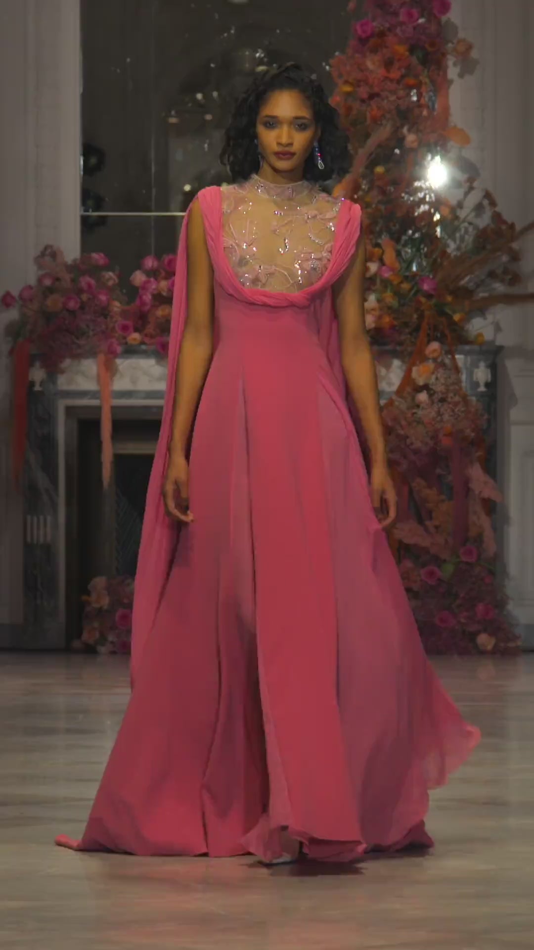...optimism shone through in Mohapatra’s ethereal bent, like the layered lattice point d’esprit dresses, flowing chiffon gown, and embroidered organza and tulle pieces.