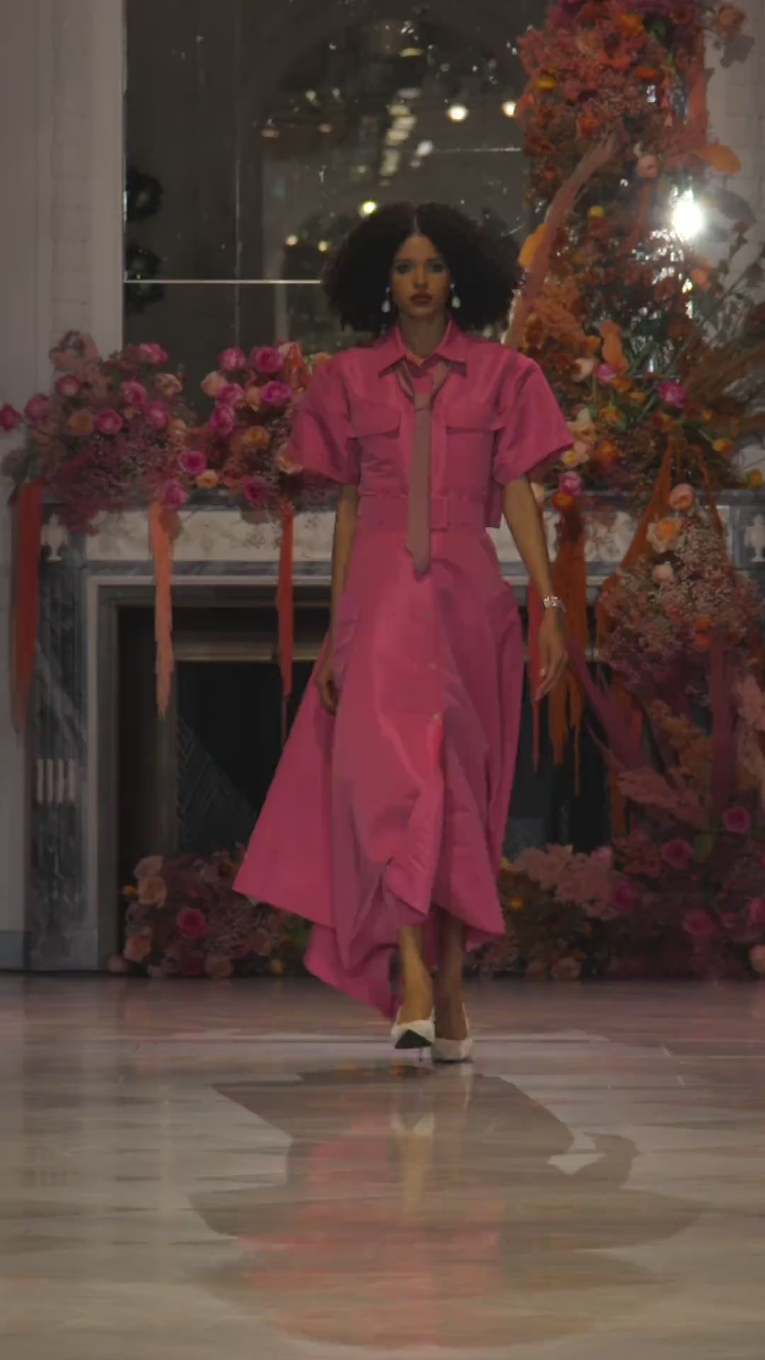 Utility meets flare and movement in this bright rose button-up trench dress. Complete with four deep square pockets, a square buckle, and prominent short sleeves, our rosy take on the trench dress is the perfect blend of masculinity and femininity.
