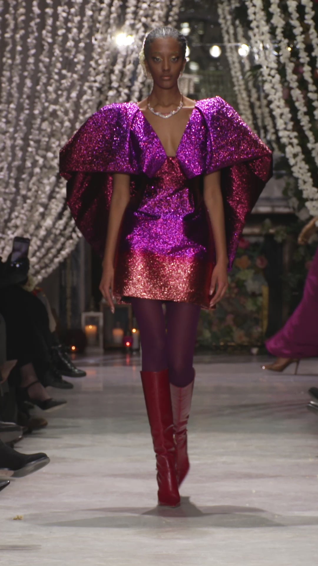 Fuchsia/Copper Ombré Lurex Cocktail Dress with Angel Wings