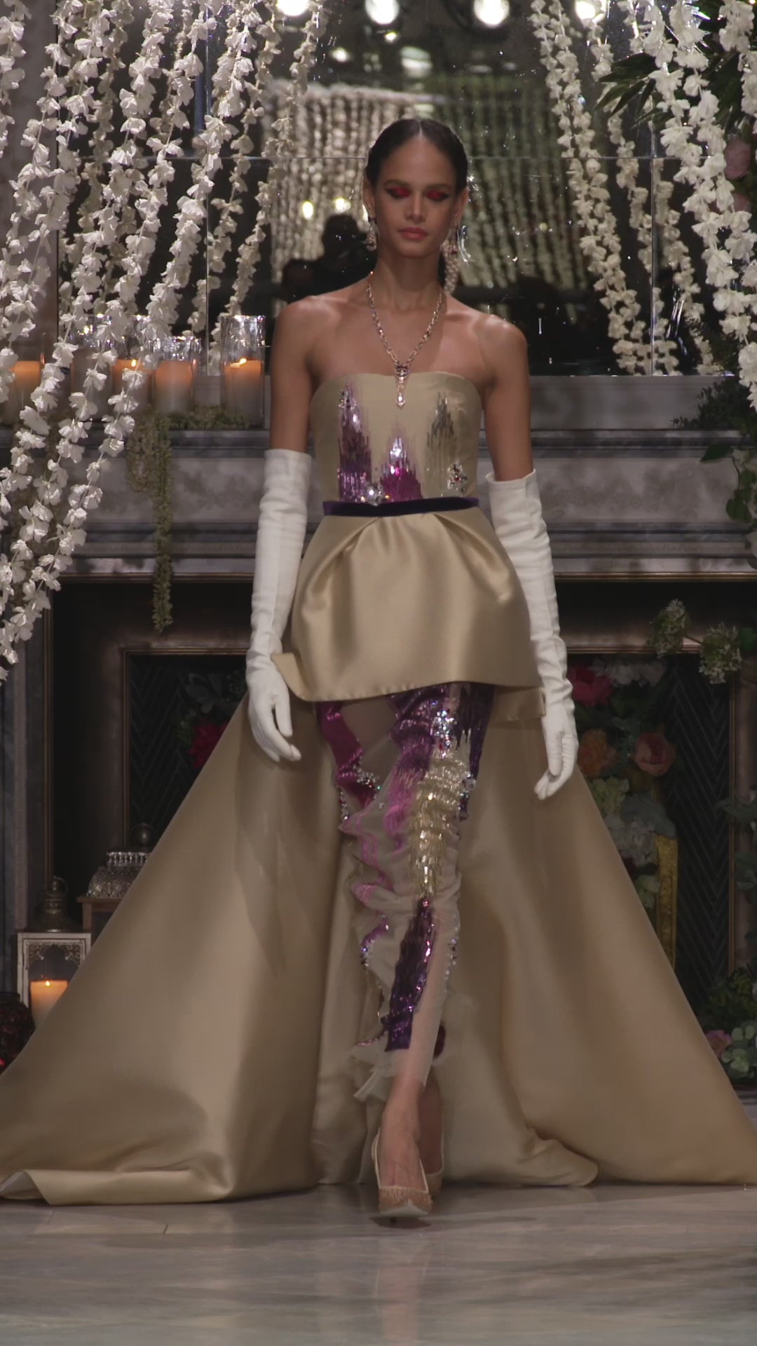 Gold Gazar Strapless Gown with Odisha Ikat Embroidery and Cascade Train