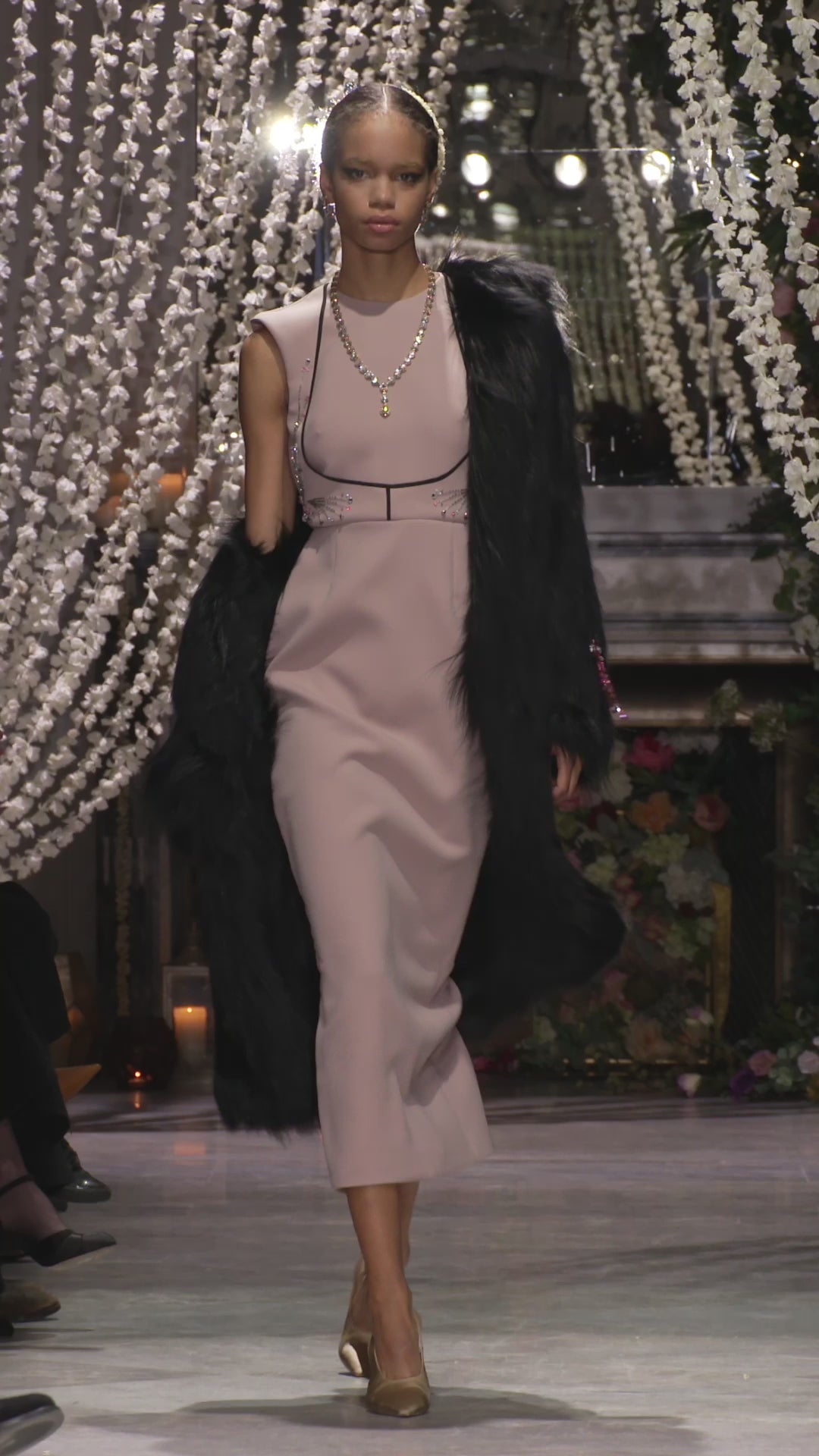 Mauve cady dress with delicate Jhoti metal embroidery accenting the waist for a subtle yet refined detail. Featuring sleek black piping, this design embodies contemporary elegance. The clean lines and flowing hem blend timeless sophistication with understated artistry.