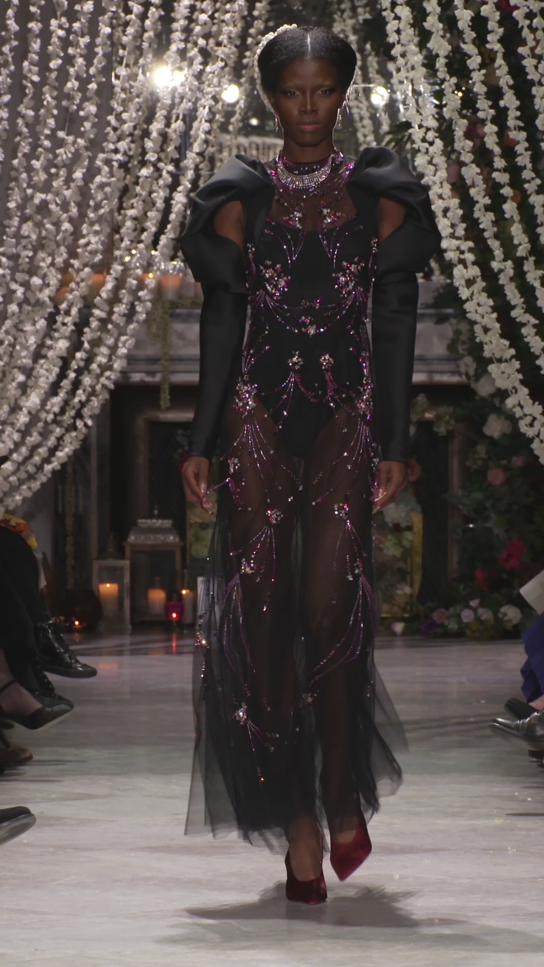 Preciosa Crystal Jhoti Embroidery Cocktail Tulle Dress with Gazar Draped Sleeves