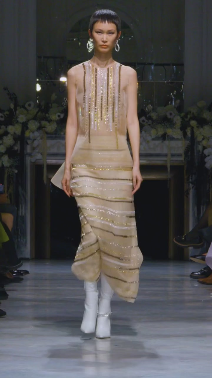 Crafted from delicate organza, this sleeveless top boasts intricate rayure embroidery. With its relaxed fit, it offers both comfort and style, making it a versatile addition to your wardrobe. Pair it with the matching Skin Organza Rayure Embroidered Tail Skirt for a coordinated ensemble, perfect for formal occasions or special events. Alternatively, dress it down with a pair of jeans for an elevated day look that effortlessly combines casual chic with effortless elegance.