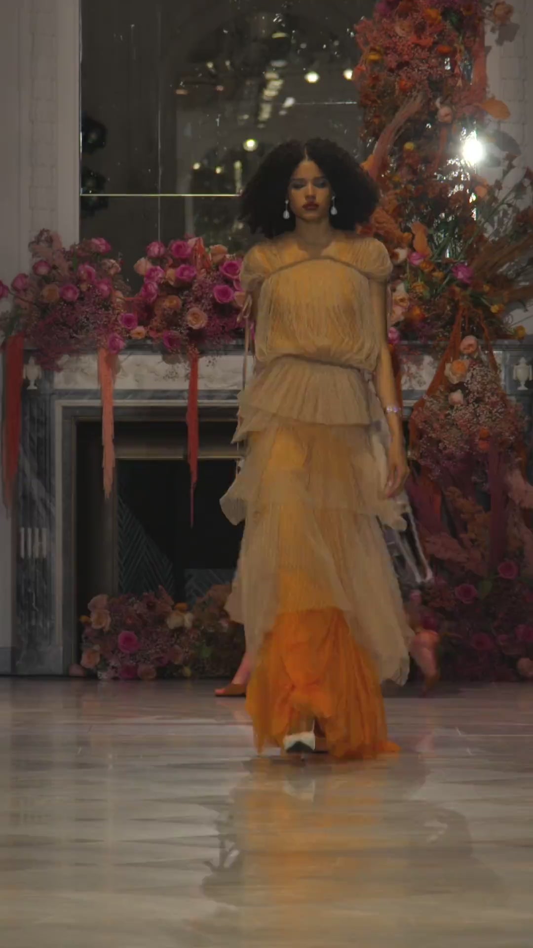 ...optimism shone through in Mohapatra’s ethereal bent, like the layered lattice point d’esprit dresses, flowing chiffon gown, and embroidered organza and tulle pieces.